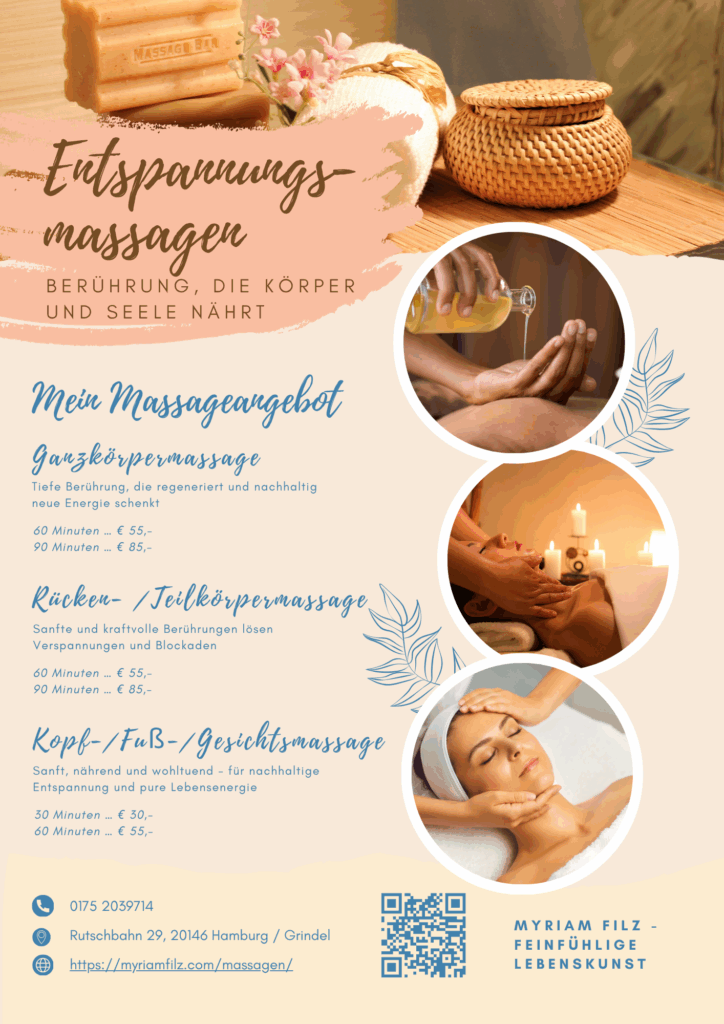 So wird jede Massage zu einem liebevollen Beitrag für Deine ganzheitliche Gesundheit und Dein Wohlbefinden.